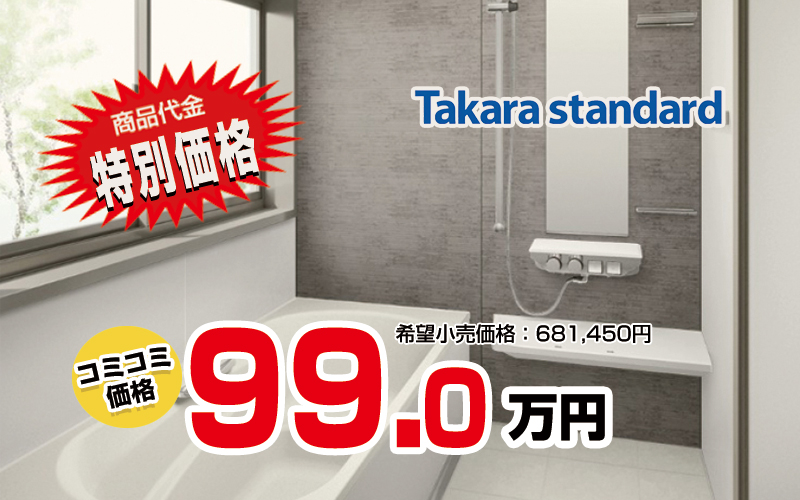 <B2401>Takarastandard グランスパ|¥990,000- 最新チラシ 2026.03.30 メーカー:タカラスタンダードシリーズ名:グランスパ1616サイズFRP製全て込み価格:99.0万円希望小売り価格:681,450円本体価格+標準工事費+処分費+消費税メーカーリンク(外部 グランスパ | お風呂・浴室 | タカラスタンダードステイホームをきっかけに変化する、暮らしの価値観や家族との時間。変わりゆく時代に生まれた、「グランスパ」という家族想いの新たな価値観。自由に選べる癒しと寛ぎのかたち、暮らしに寄り添う機能とアイディアで、毎日のバスタイムをちょっと特別にしてく... 施工事例 こちらの商品へのお問い合わせは下記フォームからお気軽にどうぞ 必須 お問い合わせ商品名 必須 ご相談内容 お選びくださいリフォームのご相談お見積もりご依頼商品のお問い合わせその他 必須 お名前 必須 メールアドレス 任意会社名 必須郵便番号 必須都道府県 必須ご住所 必須お電話番号 必須メッセージ本文